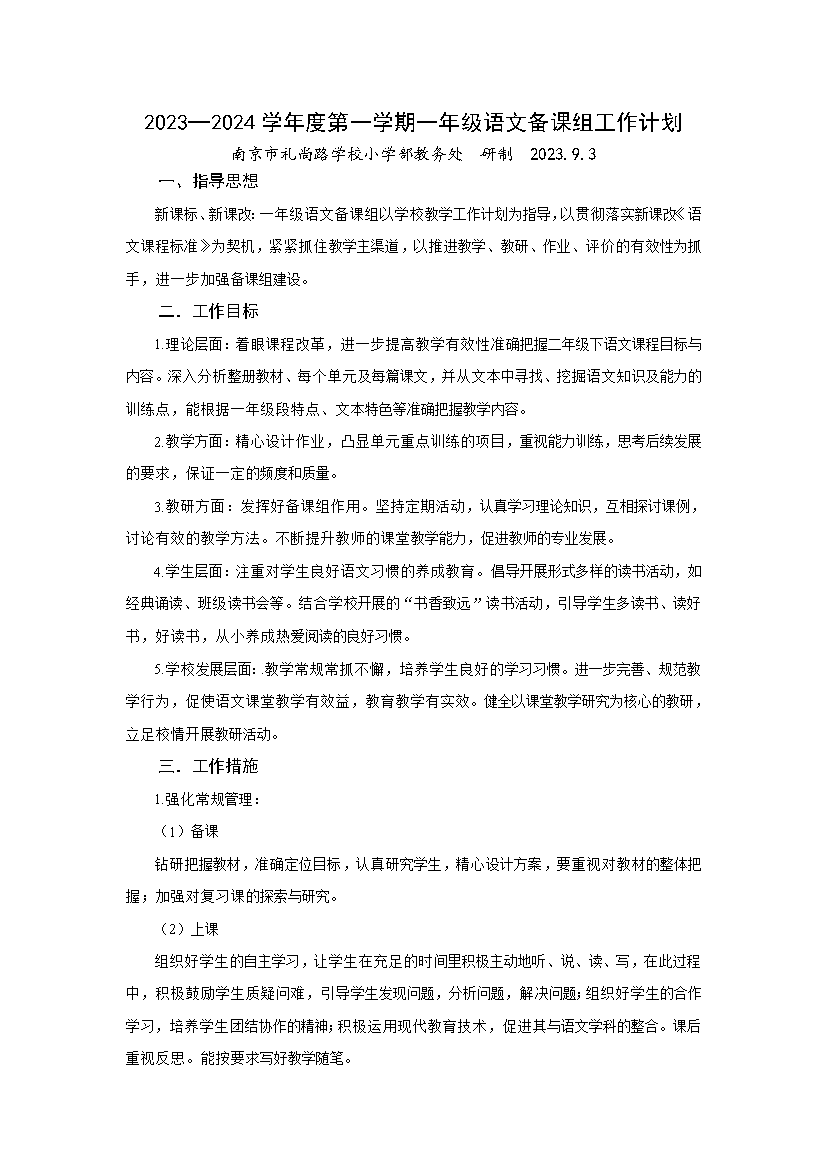 下一篇:2023—2024学年度第一学期一年级数学备课组工作计划