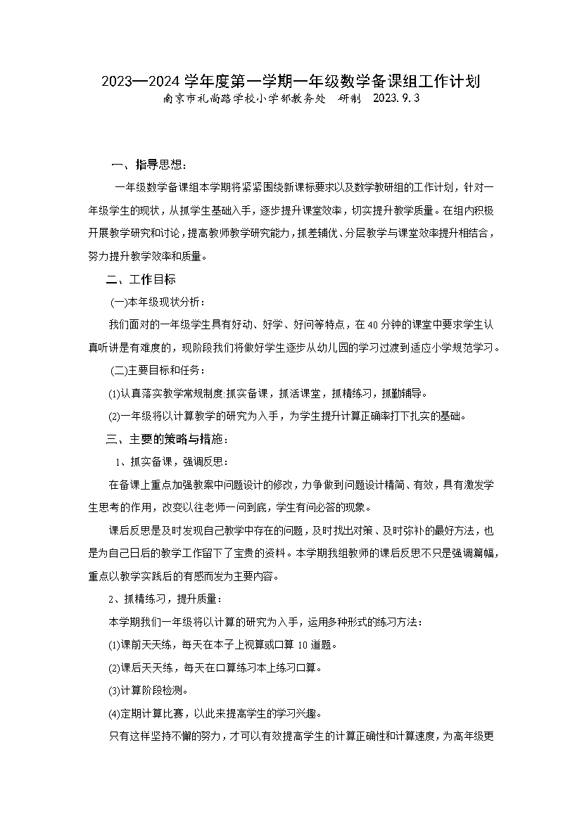 下一篇:2023-2024年第一学期南京市礼尚路学校小学部开学前教师备课、计划制定、教学进度、学习环境布置情况检查一览表