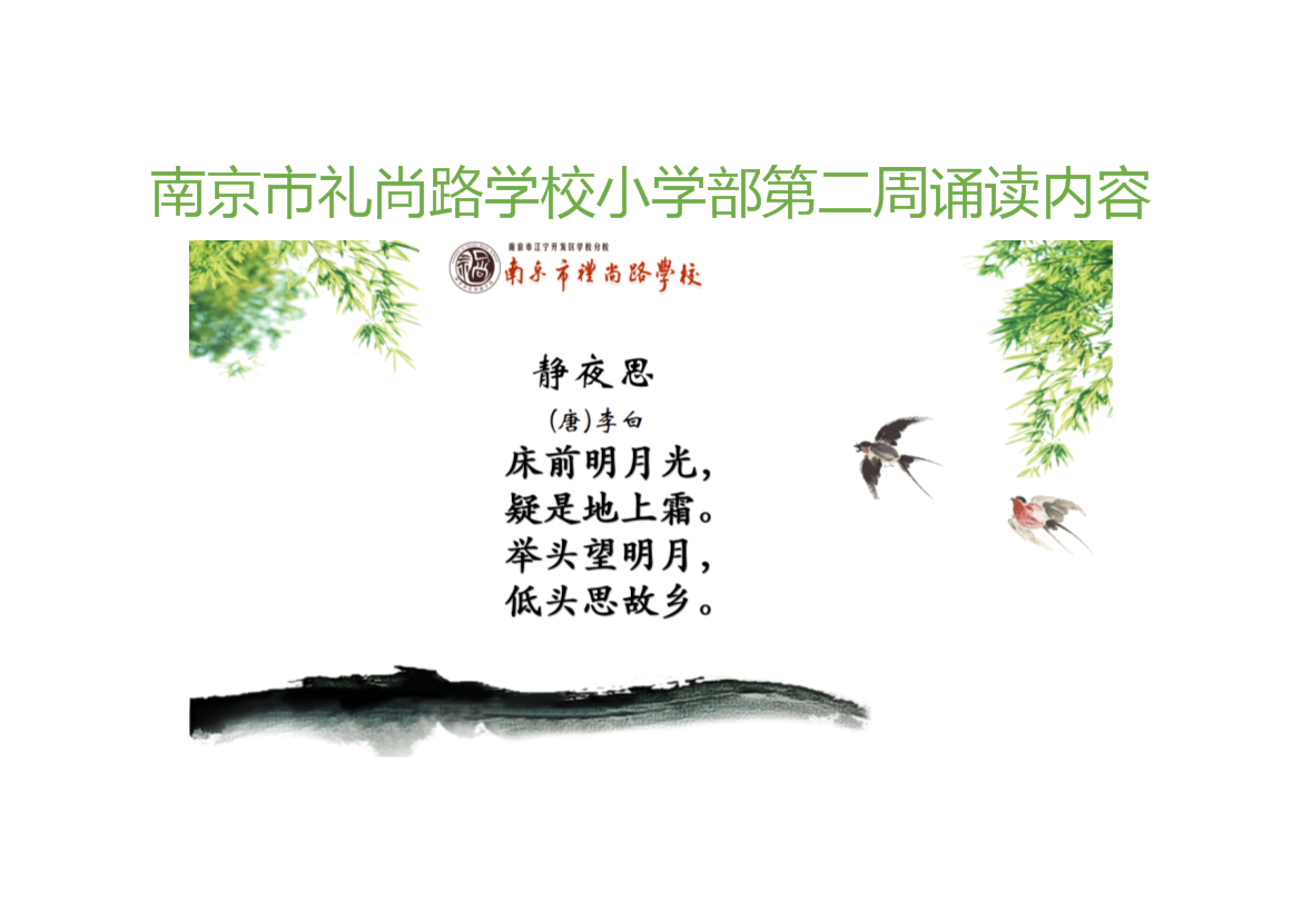 上一篇:南京市礼尚路学校小学部第一周诵读内容