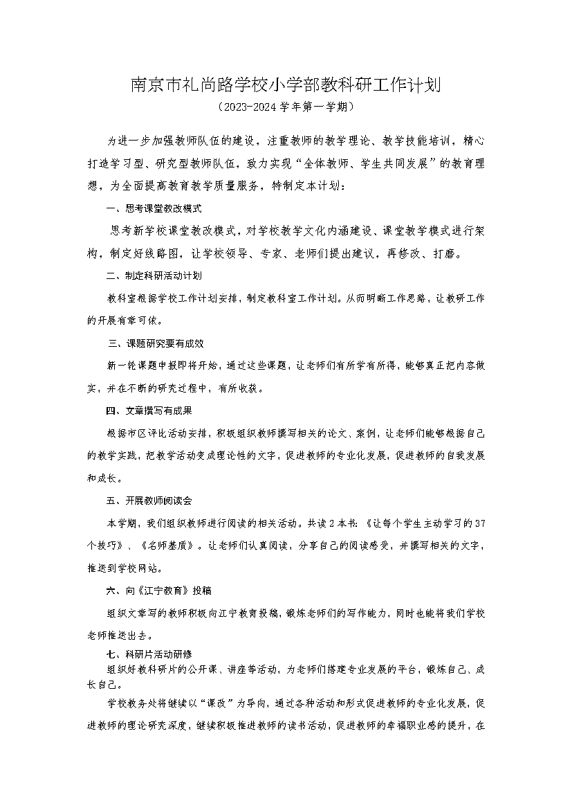 上一篇:2023—2024学年度第一学期南京市礼尚路学校小学部综合备课组计划