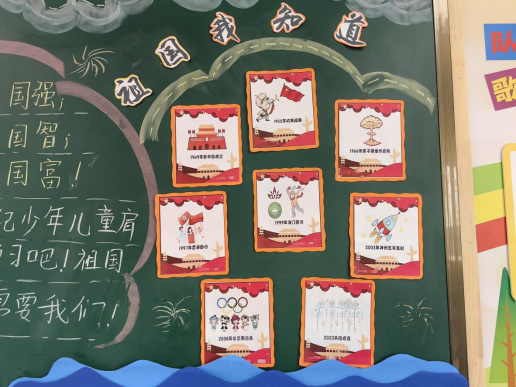 在两节到来之际,孩子们在老师的带领下精心布置班级文化,他们用小小的板报传递浓浓的情谊。其中黑板报主题为“迎中秋-庆国庆”。在师生们的共同努力下,小小的板报设计美观,内容详实,孩子们在动手设计中更深入的了解了我们的传统节日,感受到了祖国的繁荣富强。