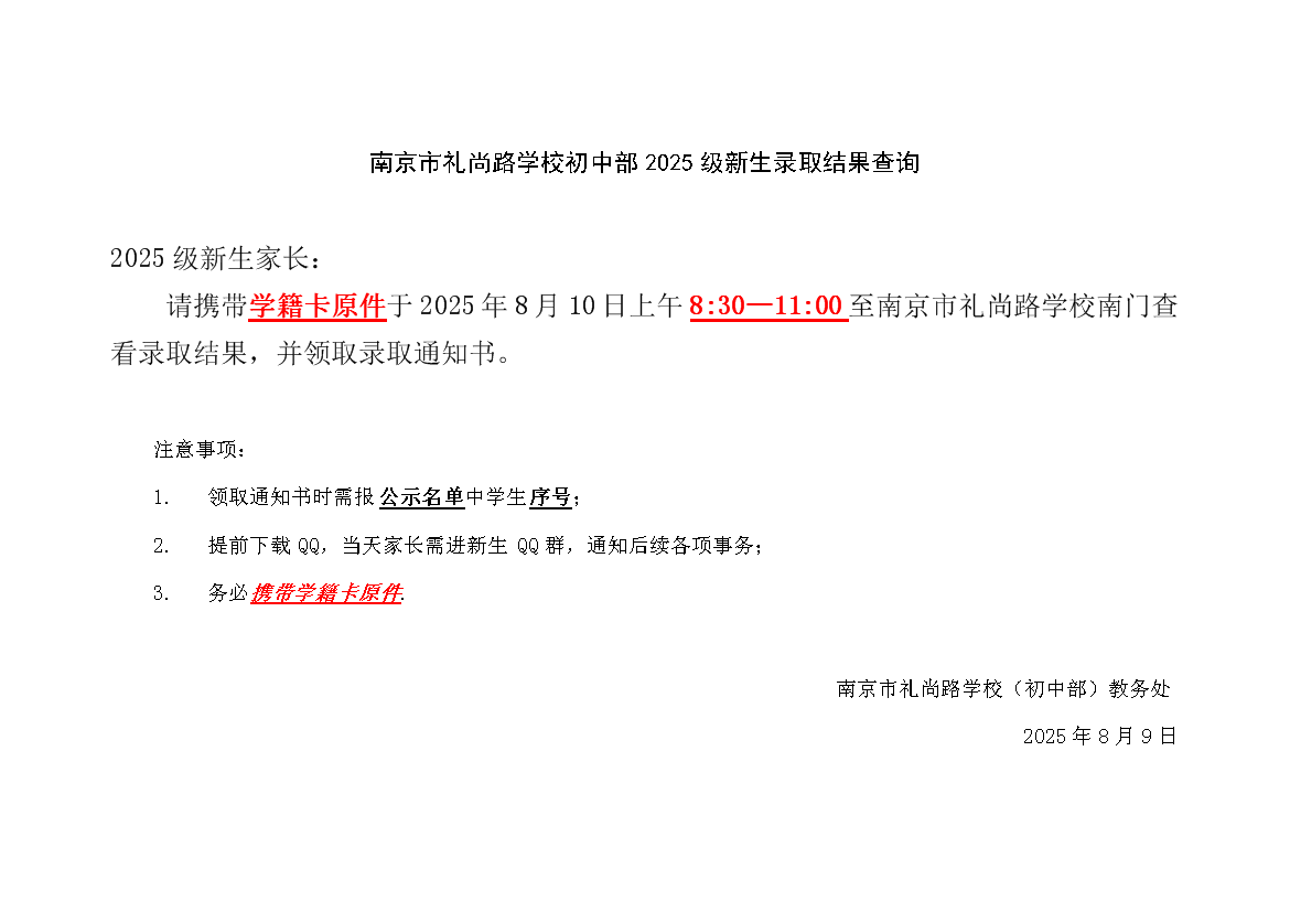 上一篇:2025年南京市礼尚路学校小学部一年级入学公告